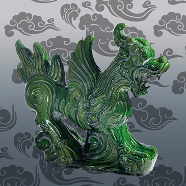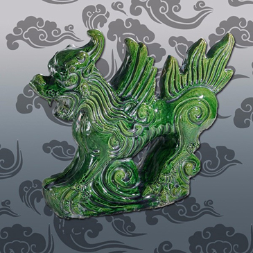 : 麒麟是中國古代神話傳說中的神獸。它是財富象征。麒麟主要是放在中間的主脊帶來財富和好運。